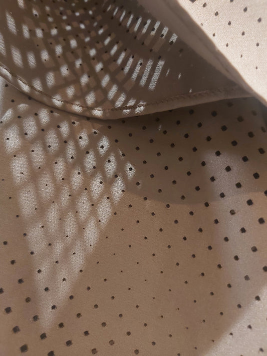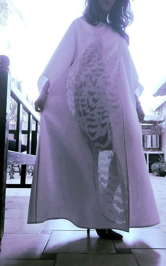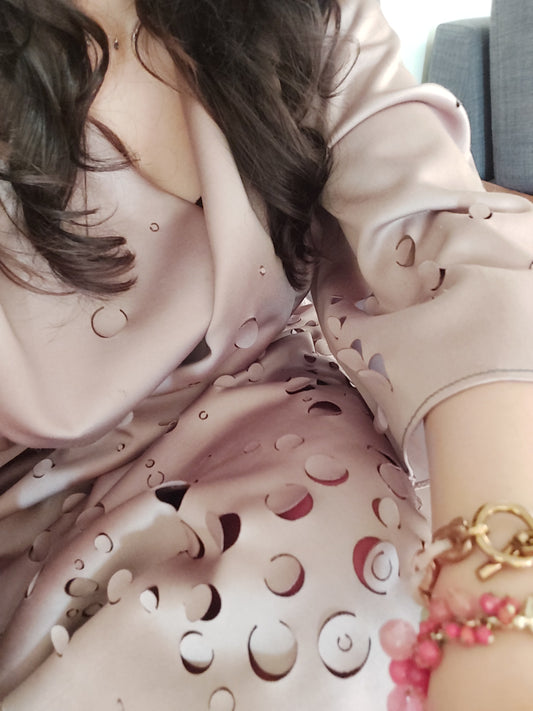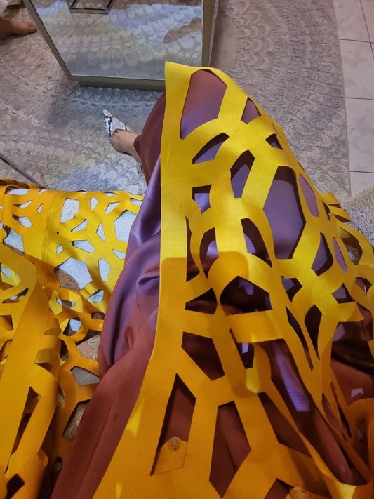 Dotted founded in Dammam, 2021 when I wanted to free my silhouette but still keep traces of the original shape of abaya. Therefore, removing dots brought depth and eventually formed a breathable dantel-like fabric of exceptional designs.